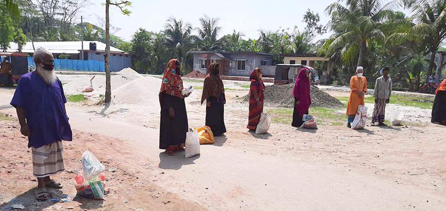 মঠবাড়িয়ায় করোনা সংকটে সামাজিক দূরত্ব বজায় রেখে চাল ও নগদ অর্থ সহায়তা প্রদান