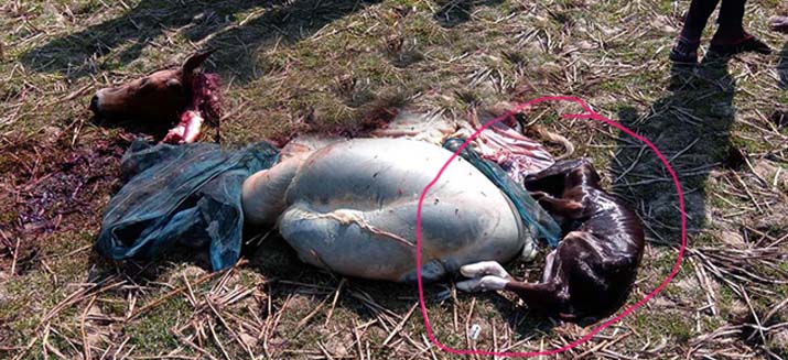 থানা ও স্থানীয়দের সূত্রে জানাগেছে, উপজেলার জরিপের চর গ্রামের সৌদি প্রবাসি কামাল ঘরামীর বাড়িতে তার পরিবারের সদস্যরা দুটি গাভী প্রতিপালন করতেন। গোয়ালের একটি গাভী গর্ভবতী ছিলো। গাভীটি আগামী ৪/৫দিনের মধ্যে বাচ্চা প্রসব করার কথা । এমন অবস্থায় সোমবার দিনগত গভীর রাতে সংঘবদ্ধ একদল দুর্বৃত্ত গোয়াল ঘর থেকে গর্ভবতী গাভীটি চুরি করে কৃষিজমির মাঠে নিয়ে জবাই করে। জবাইয়ের পর মাংশ লুটে গাভীটির মাথা ও পেটের একটি বকনা বাছুর ফেলে রেখে পালিয়ে যায়। আজ মঙ্গলবার সকালে মাঠে কৃষি শ্রমিকরা জবাইকৃত গাভীর পেটে থাকা বাছুর ও গাভীর মাথা পরিত্যাক্ত দেখতে পেয়ে থানায় খবর দেয়। পরে পুলিশ ঘটনাস্থলে এসে মেহেদী হাসান নামে এক যুবককে জড়িত সন্দেহে জিজ্ঞাসাবাদের জন্য আটক করে।