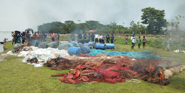 ভাÐারিয়া থানার ওসি এস এম মাকসুদুর রহমান জানান, তিনি খবর পেয়ে ঘটনাস্থলে যান। এ ব্যাপারে ভাÐারিয়া থানায় একটি সাধারণ ডায়রী করা হবে। এ অভিযানকালে কারেন্টজাল, বেহুন্দীজাল, ড্রামসহ প্রায় ১৫ লাখ টাকার মাছ ধরার সরঞ্জাম আটক করে পুড়ে ফেলা হয়।